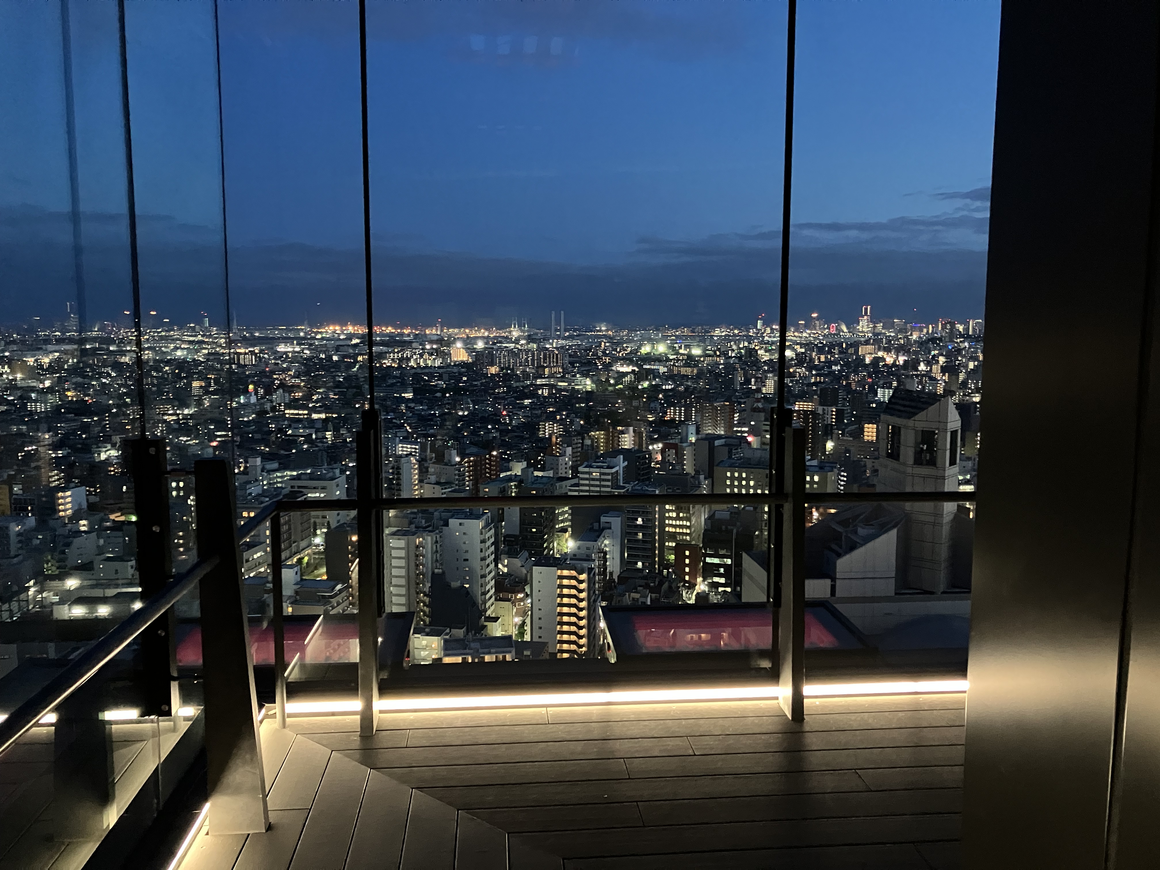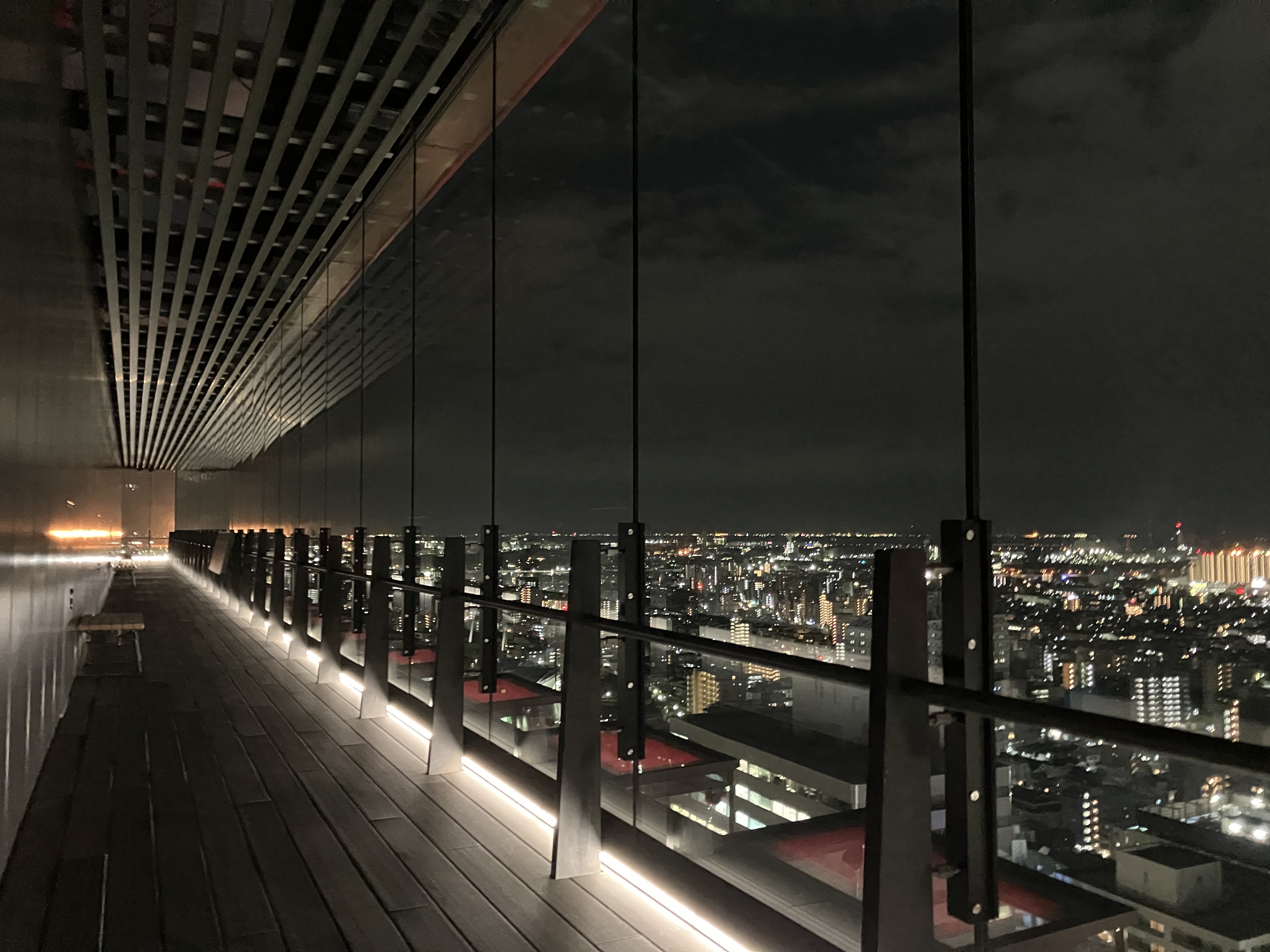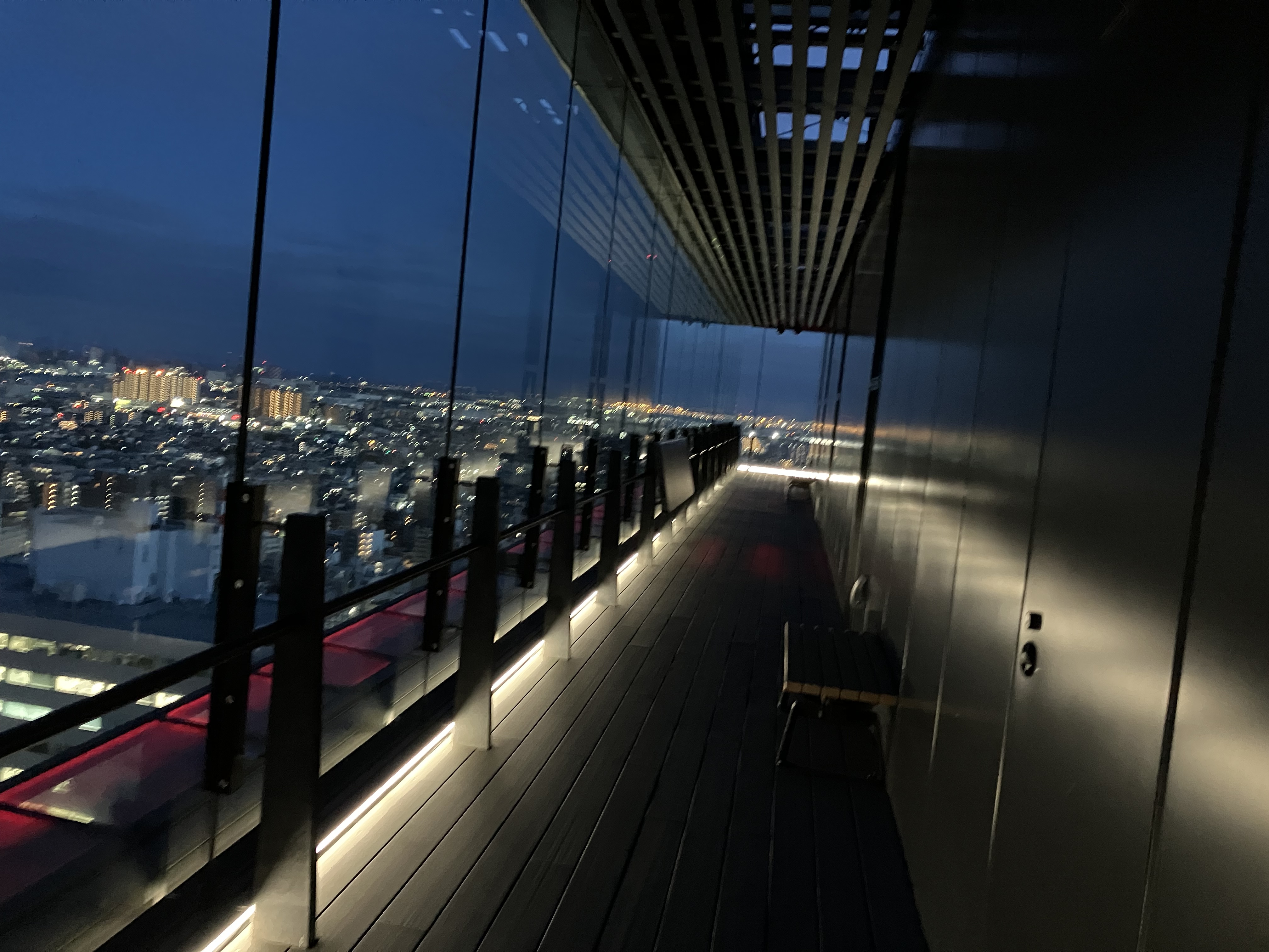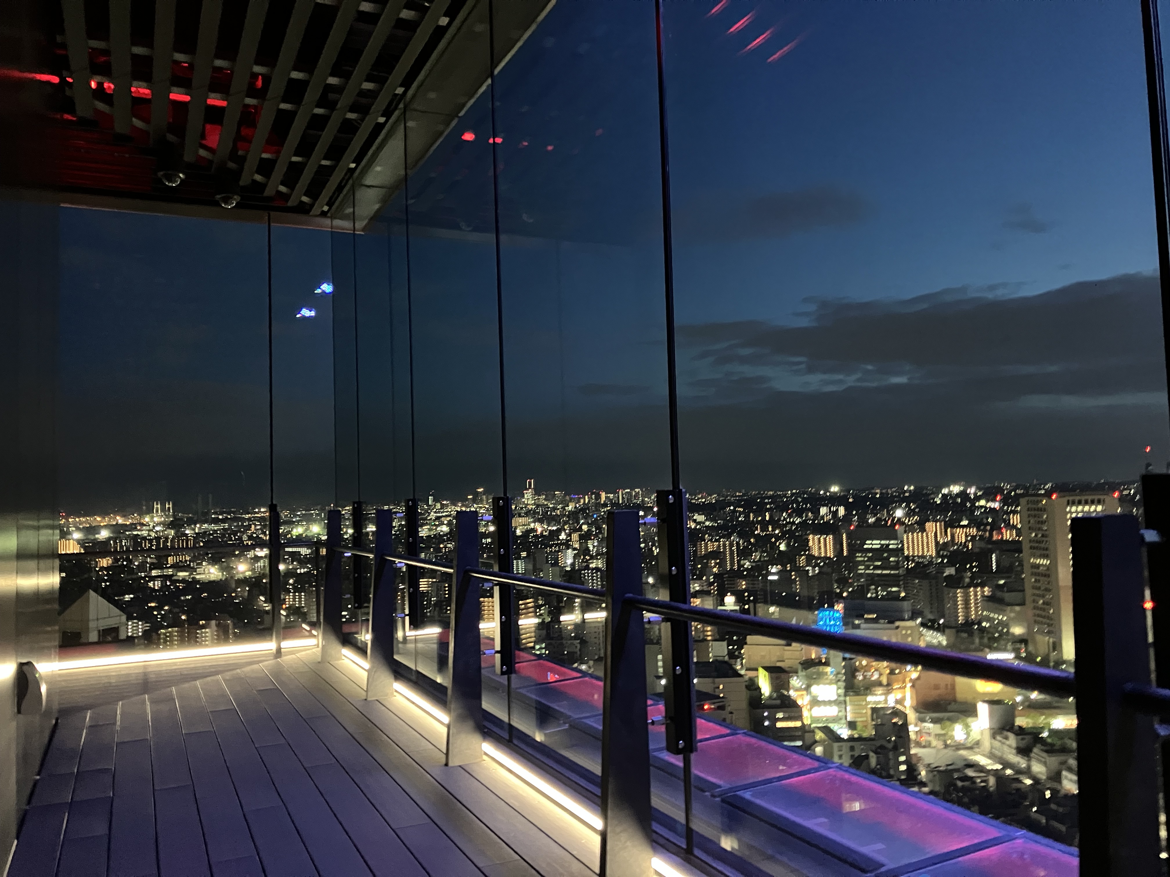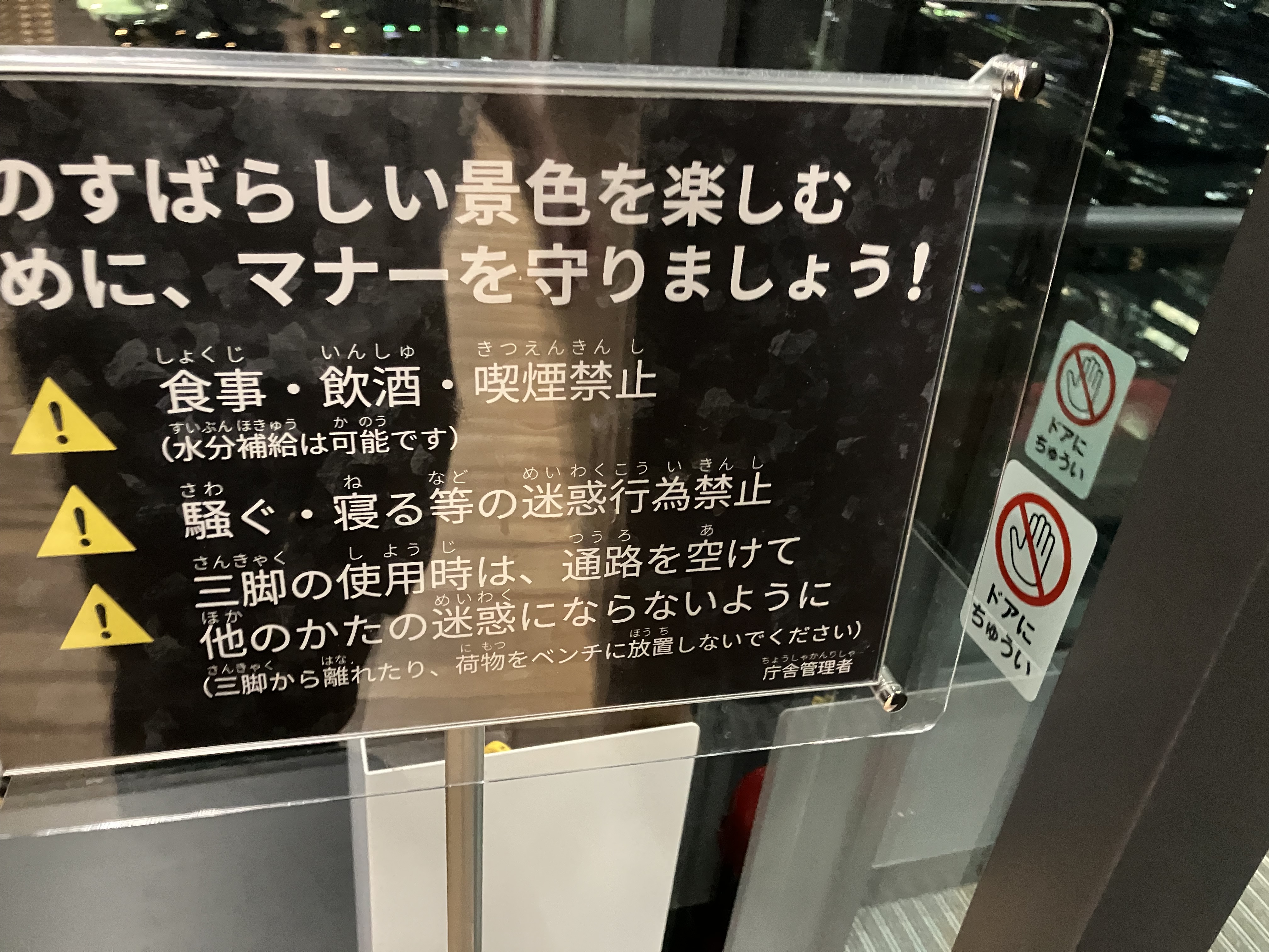 フロアには腰掛もあって、座ってゆっくり夜景を観れるのも嬉しいポイント。