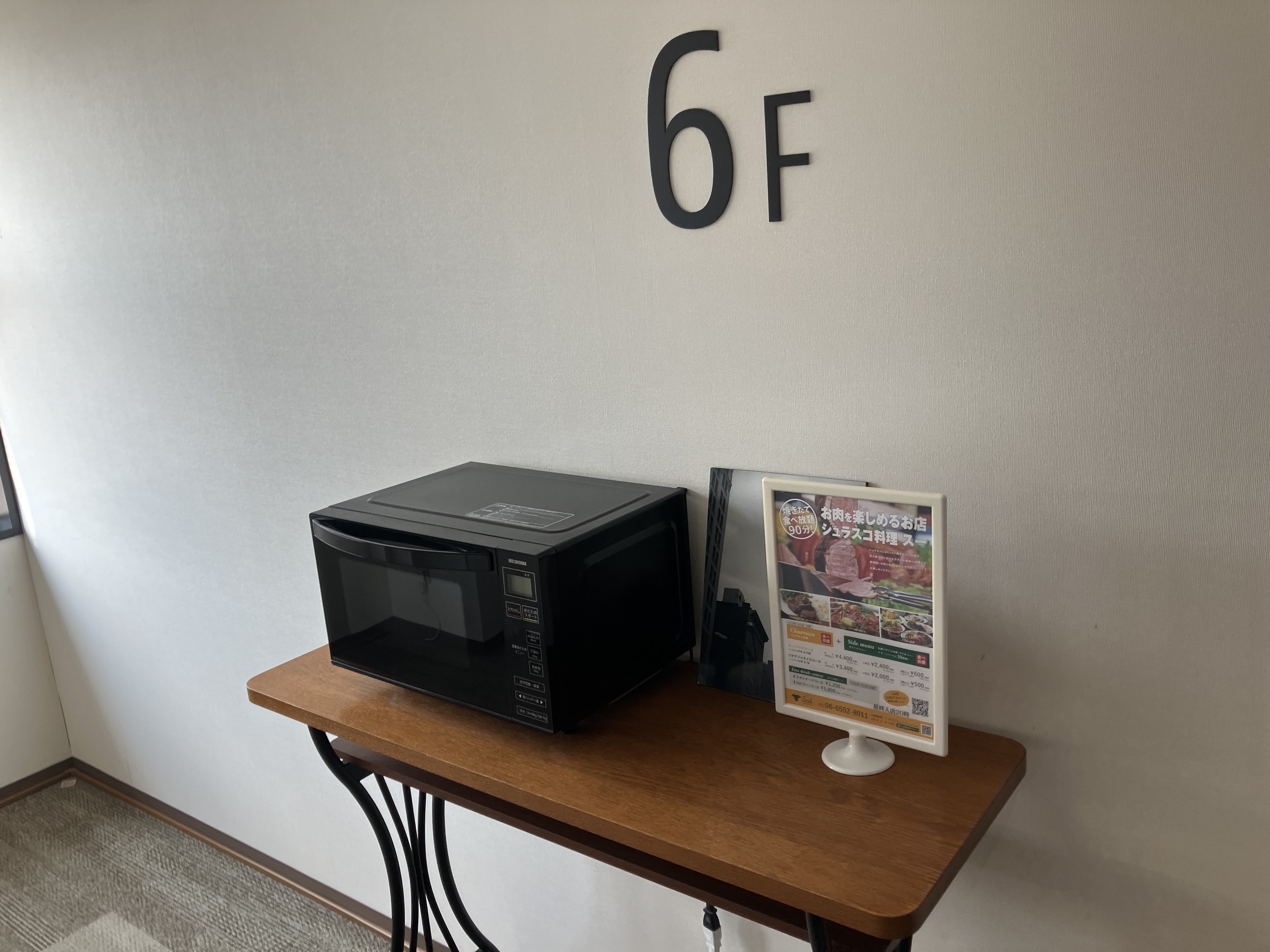 おそらくどのフロアにも、エレベーター前に電子レンジがあります。