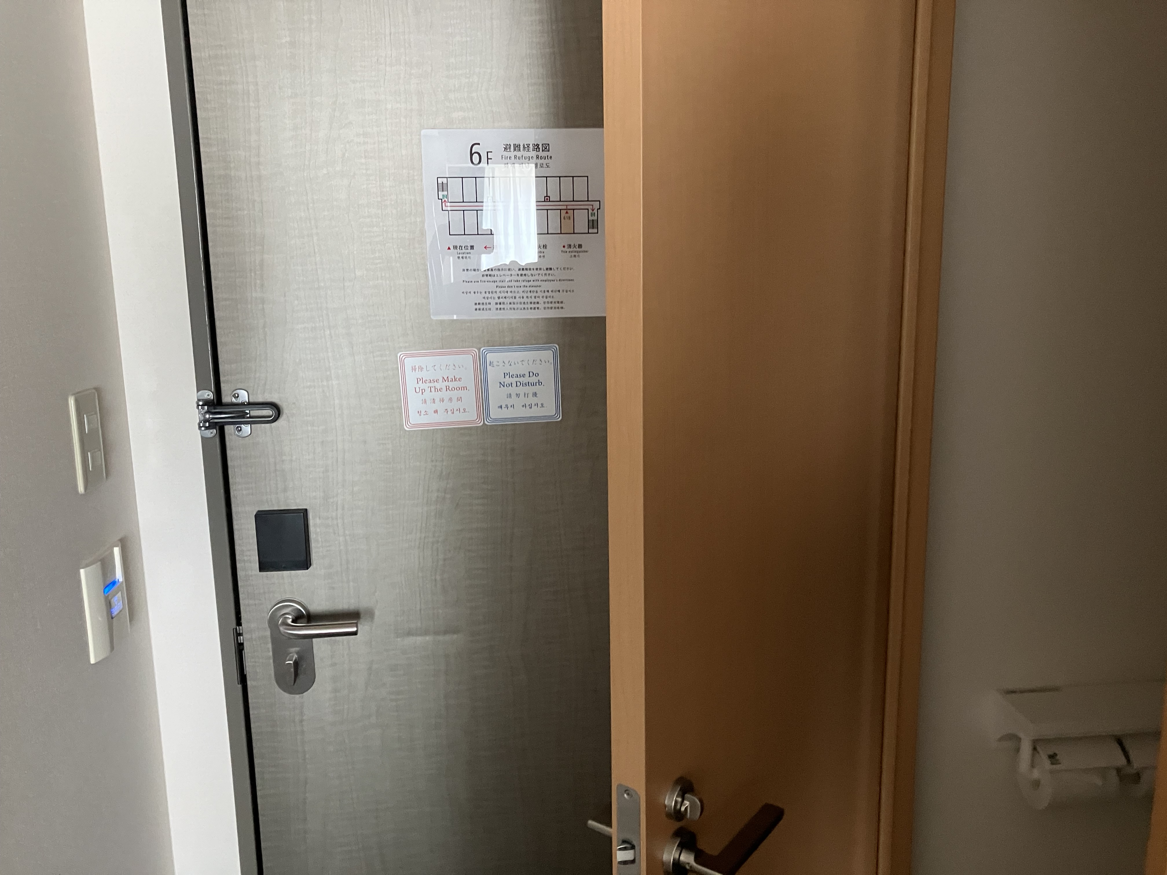 部屋の扉の内側には、掃除のお願いor起こさないで、のマグネット。