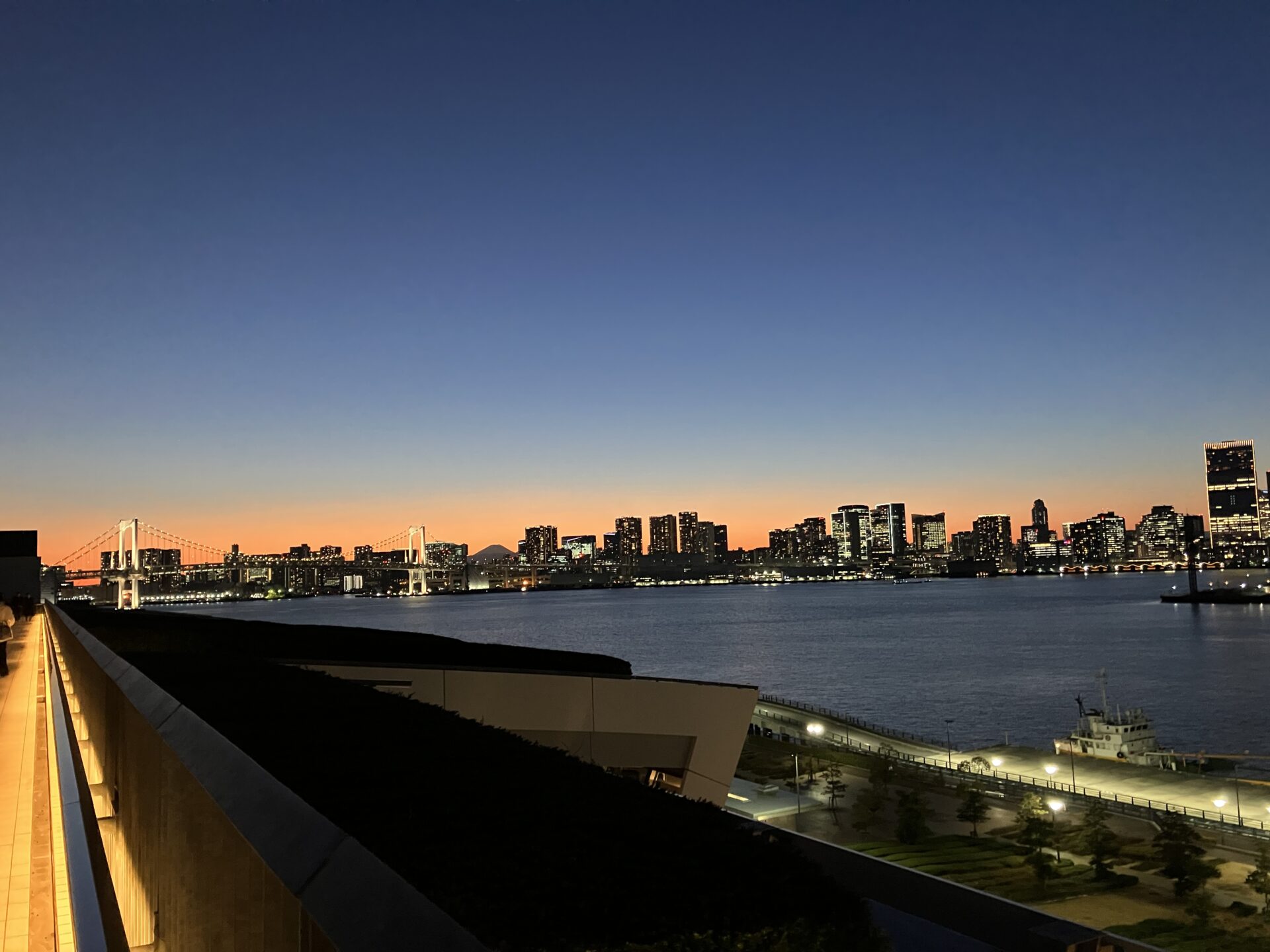 お台場で無料の夕焼け・サンセット・夜景スポット レインボーブリッジのライトアップも素敵 デックス〜アクアシティ