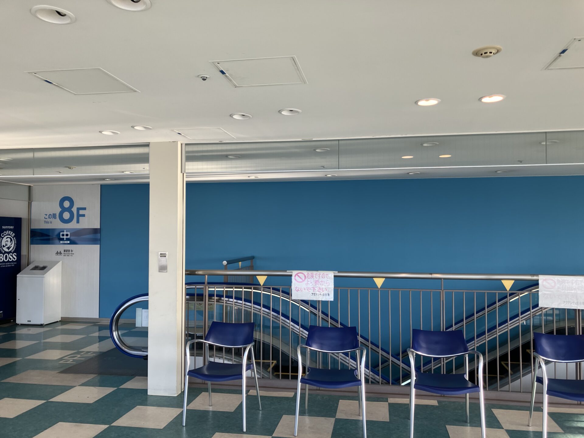 写真の白い矢印の方向に進むとエレベーター乗り場です。