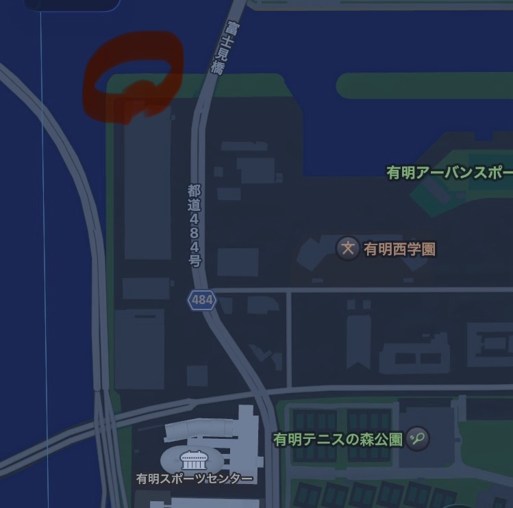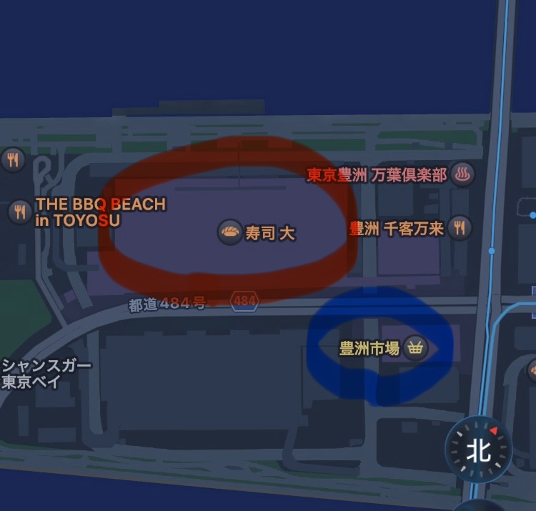 豊洲市場は下の写真の青丸部分が表示されるんですが、